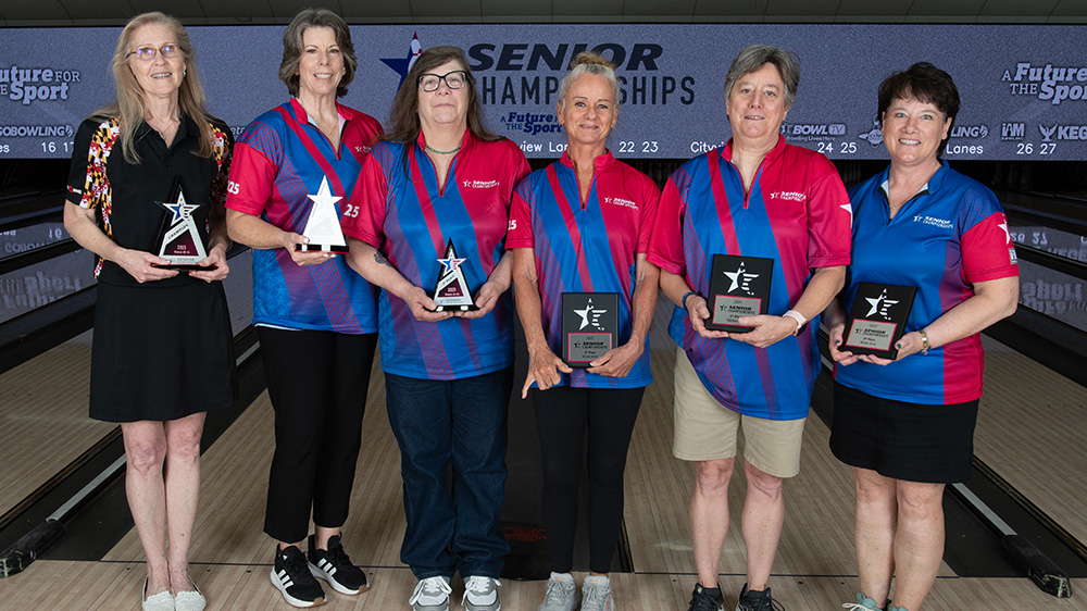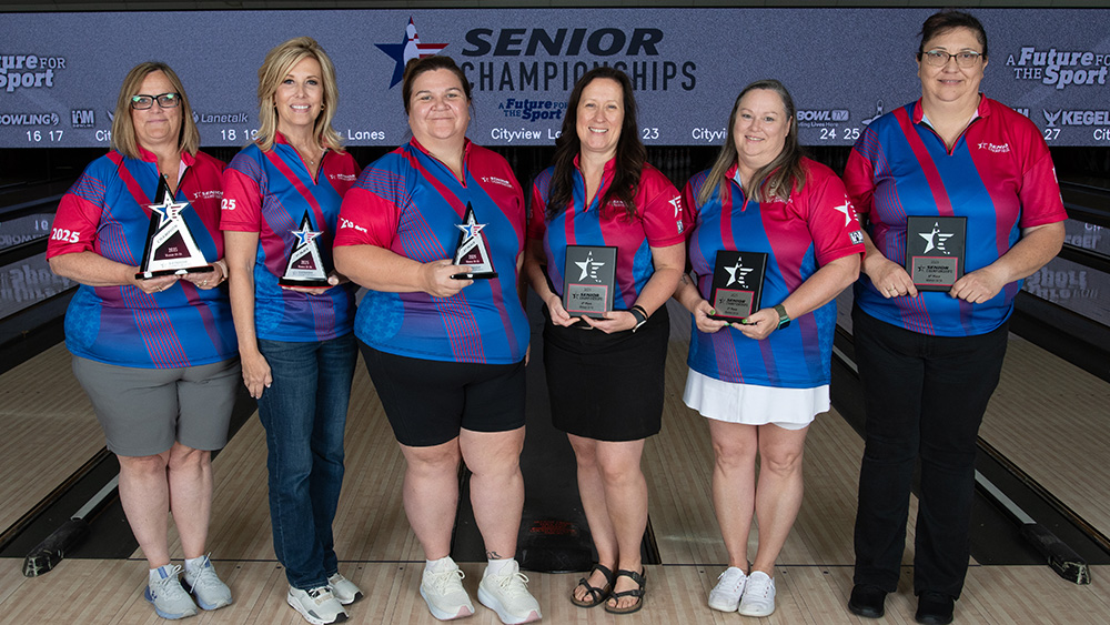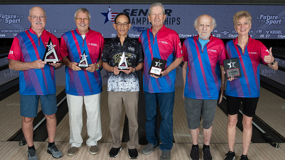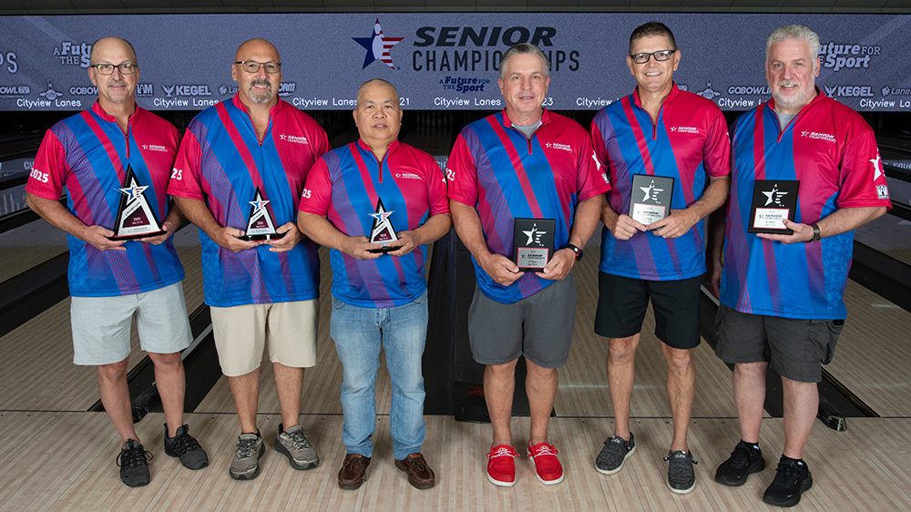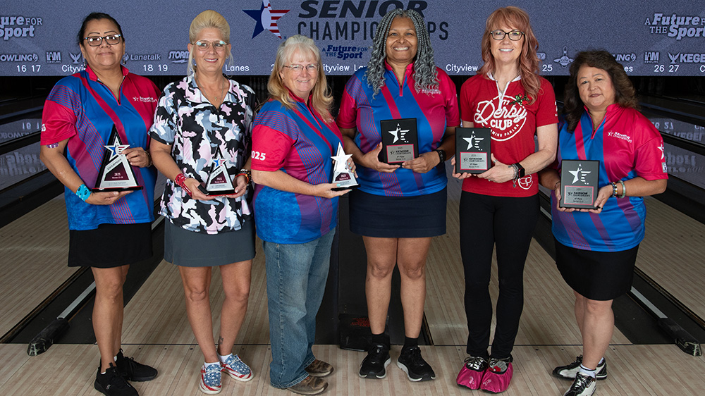 The top six finishers from each division at the 2025 USBC Senior Championships are pictured below. All scores include handicap and bonus pins based on seeding. Find full standings here.