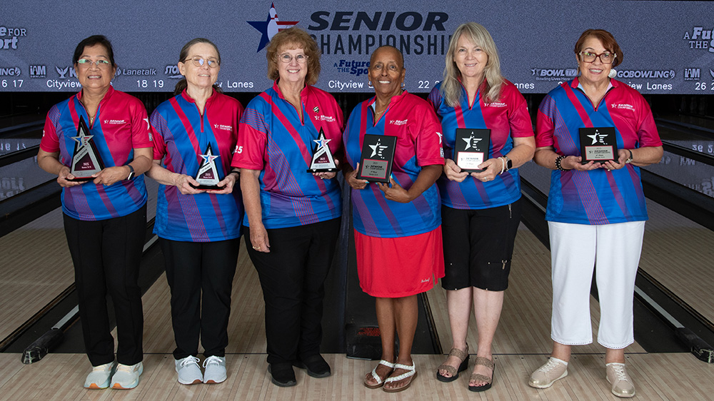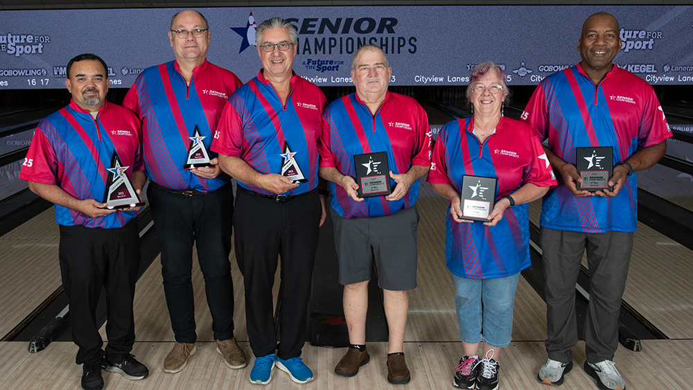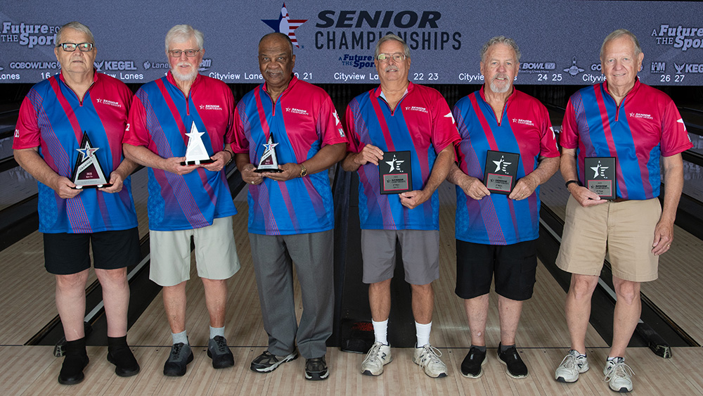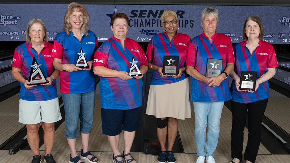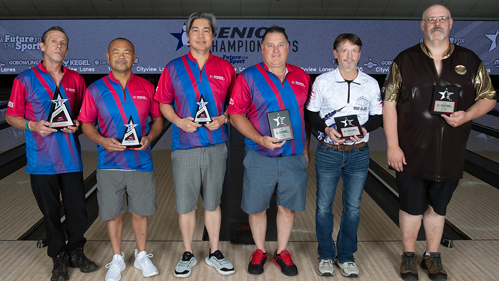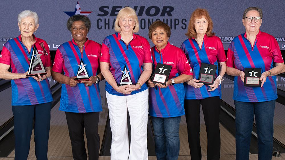 The top six finishers from each division at the 2025 USBC Senior Championships are pictured below. All scores include handicap and bonus pins based on seeding. Find full standings here.